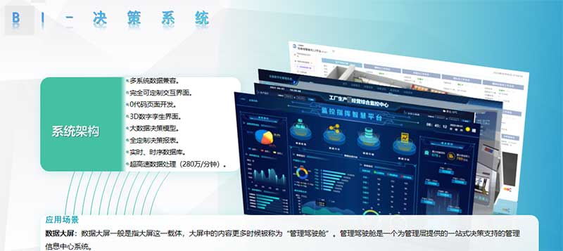 简单介绍:智能数字采集控制中心平台+大宗物料管理系统应用场景一、主要应用于规模化、连续化生产的现代企业,在较低维度,实现企业基本的数字化改造,并为将来更进一步的智能化转型 打好良好的数字化基础。二、所有数字信号、数据均可被汇总后,统一独立运行或者接入企业原有的信息化系统(MES/ERP等)三、通过对接入的设备接口数据、丰富的生产环节创安自动化实时数据的建模与分析,感知各个设备、物料、能源的时空状 态,在保证安全的前提下,给出更为合理、高效的生产节拍建议,以便企业有的放矢地进行排产优化。四、通过数字孪生系统,将各个生产环节可视化,同时也可以为设备运维提供